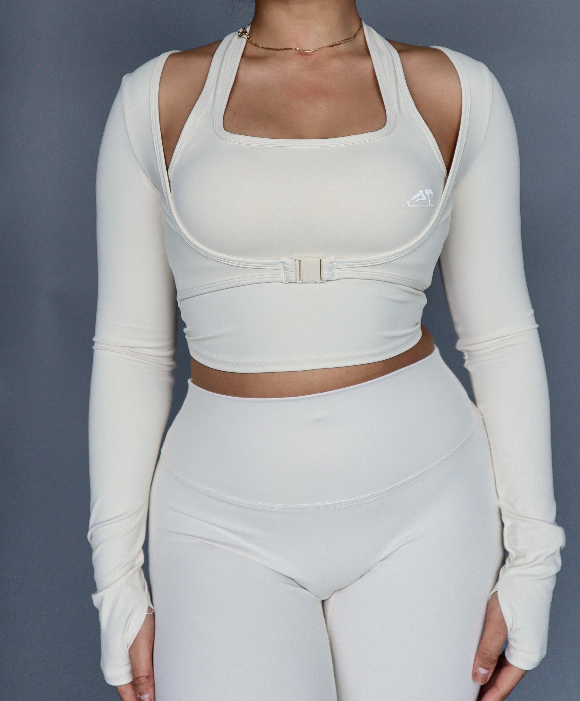 A must have style for spring time, the Breeze Long Sleeve Halter Cropped Top is an essential for taking your off-duty look from the gym floor to the coffee shop. Featuring a halter top with mock buckle long sleeve, the Breeze crop top has angled shoulders that create a flattering silhouette. Designed in our premium contour fabric that’s seamless, smoothing and effortlessly moves with your body, the Breeze crop top is complete with long sleeves with thumb holes, perfect for lifting weights and staying warm this season. Style with our Pocket Butter or Core Contour leggings for a cohesive athleisure look.
